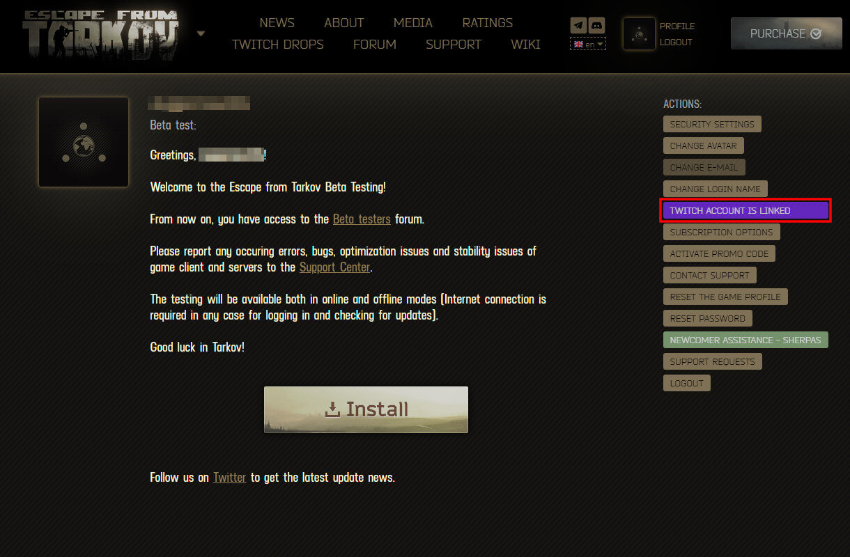 - Habt ihr alles richtig gemacht, findet ihr auf der Profilseite von Escape from Tarkov nun den neuen lila Button „Twitch Konto Verknüpfung aufheben“.